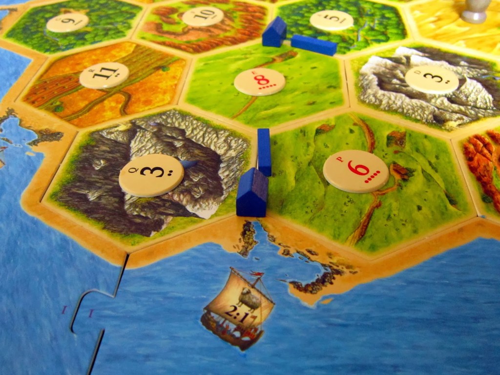 The Cartel Variant Strategy focuses on share control of a resource in order to reduce the chance of the robber being place on a title you need. If your settlements are sharing a tile with one or more player then it will decrease the chances of you being hit by the robber. This event is because it now gives you a 50% chance of you or the person you are sharing the tile with to get the robber and neither you nor the person you are sharing with will put the robber on the tile. The robber is placed mainly on the dominant player, so if you are in that position you want to also diversify your locations because if you are stuck to one location, and the robber is placed on your primary resource then you are basically shut out of the game until the robber is moved. If you diversify your settlements, it is impossible for other players to completely shut you out of the game. Also, focusing on the resources with little appeal to other players becomes more valuable as the game goes on especially if you have the corresponding port. For example, if I am pursuing a sheep in the beginning of the game and also place one settlement on a sheep port. In the end, when the sheep is rolled, you could maximize the port by trading resources at a discount rate and get more necessary resources.” Sheep and wheat are the resources that are targeted for this particular strategy. This event is because they are not targeted at the first placement of the game. In order to also prevail with this strategy one needs to obtain knights to make sure the robber doesn’t target you, and preferably on your opponents most valuable tiles or tiles that your opponent has a port.